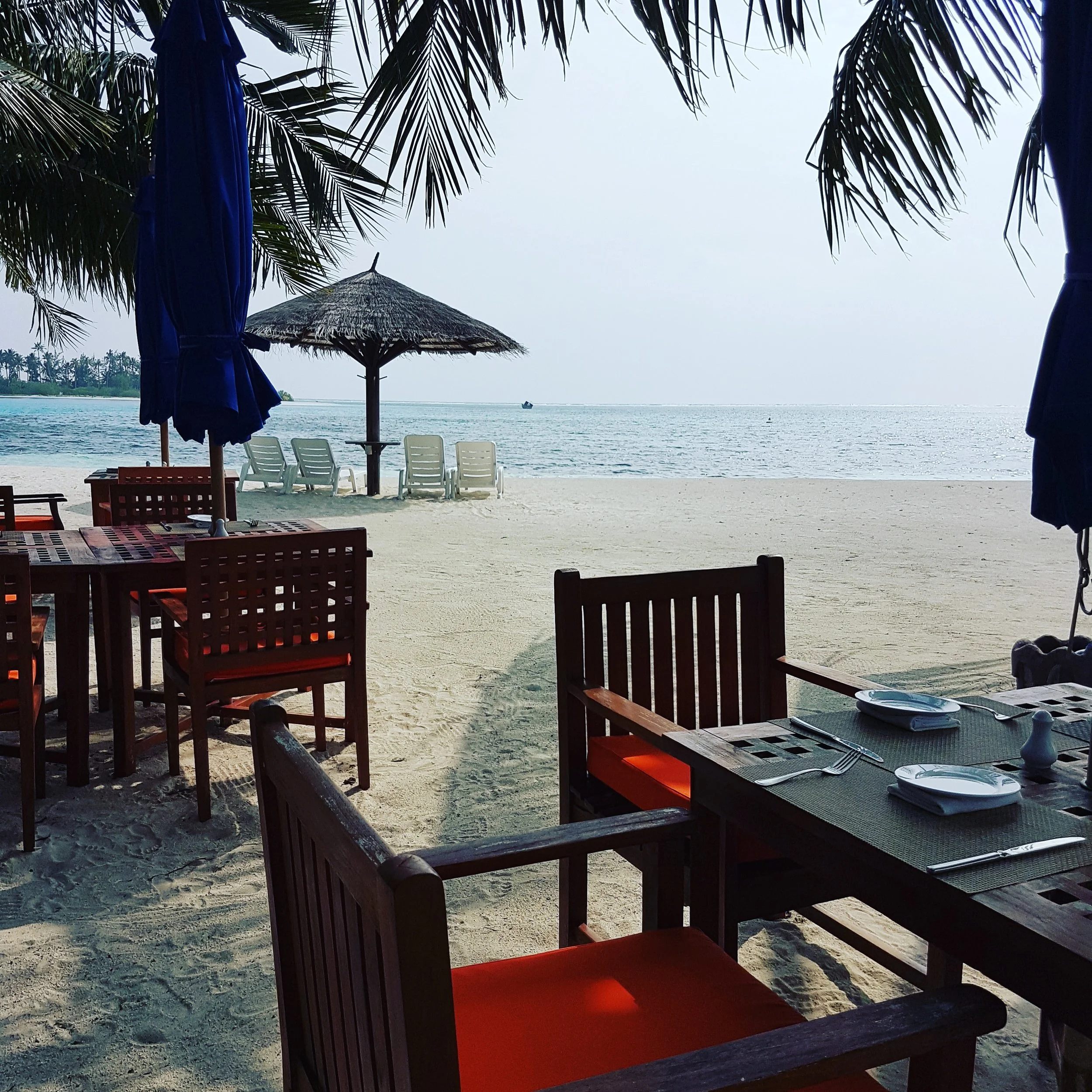 A luxurious breakfast on the beach at Olhuveli Beach & Spa Resort