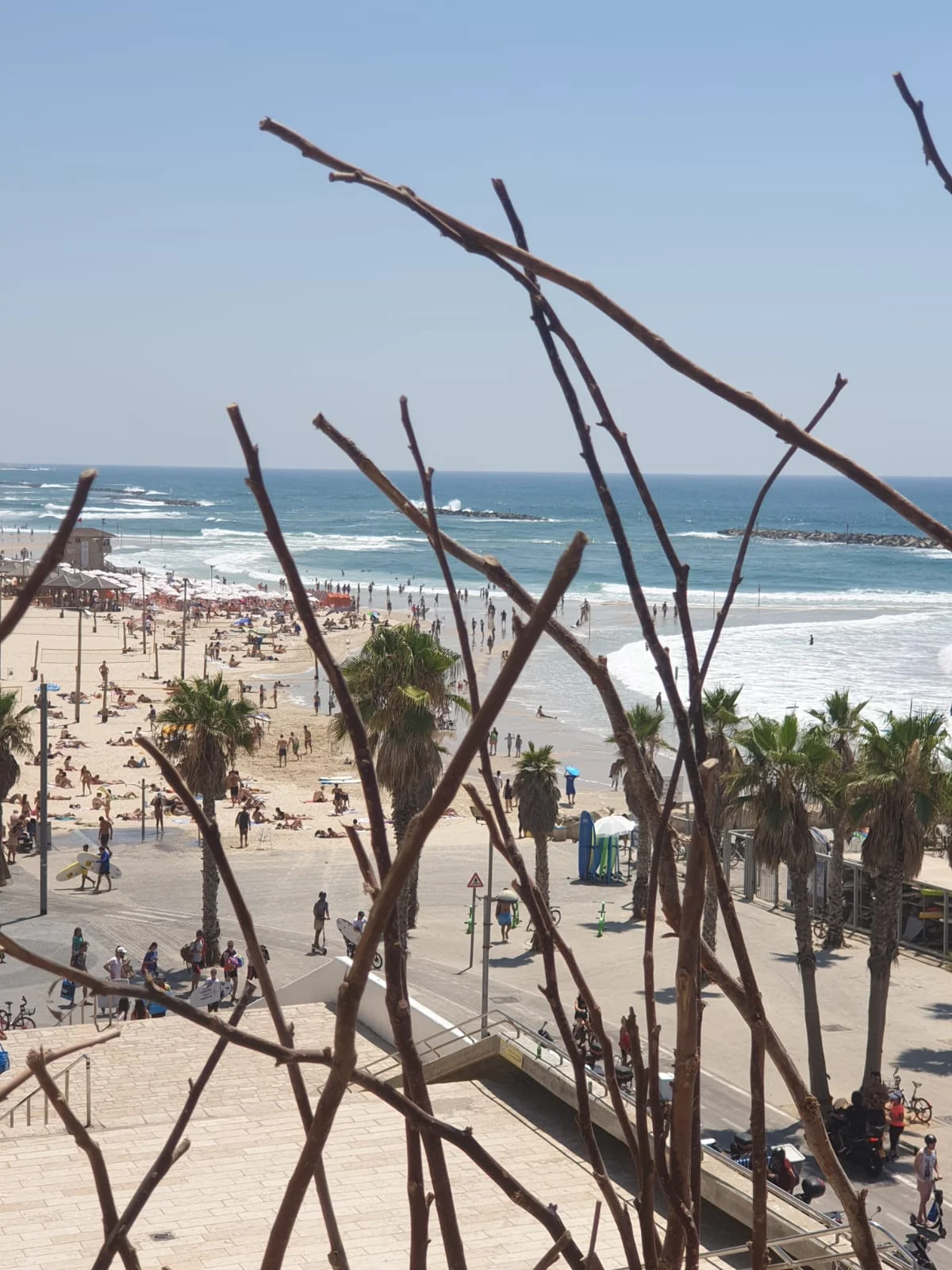 Views from the Por Do Sol rooftop overlooking the beachfront of Tel Aviv